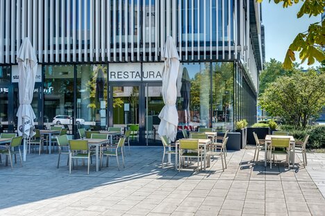 いくつかのカフェやレストラン、美しいビアガーデン "オーマイスター"