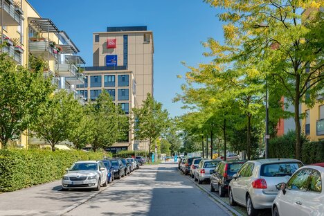 自家用車の場合、A9高速道路に近いことが、この立地の利点です。ミトラーリンクやミュンヘン空港へは、この高速道路を使って比較的短時間で行くことができる。その便利な立地にもかかわらず、一般交通はほとんど周辺を通るため、この地区自体は非常に静かである。