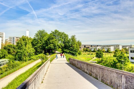 ノイハーデルン地区には、アウグスチヌム・クリニック・ミュンヘンやミュンヘン学生自治会の集合住宅シュティフトボーゲンがある。Neuhadernは主に緑地のある大規模な集合住宅がある。南側には 庭付きの古い戸建て住宅もある。自然に近く、静かな立地がノイハーデルン住宅地の最大の利点です。