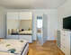 とてもよい 窓あり, セラミック調理プレート, 食器洗い機, 電子レンジ, 冷凍冷蔵庫, 電気オーブン, ダイニングテーブル, 食器完備