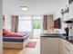 アパートメント・キッチン, 窓あり, セラミック調理プレート, 換気フード, 冷凍庫付き冷蔵庫, 電子レンジ, 食器完備
